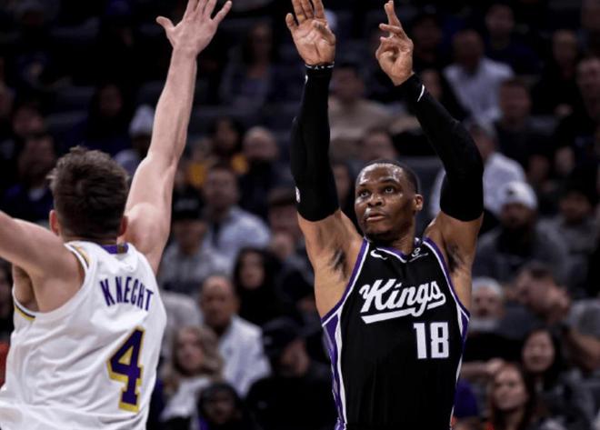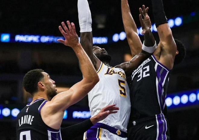 NBA常规赛西部焦点战,国王坐镇主场迎战湖人队,本场比赛之前,两队战绩都为1胜1负。湖人上来就遇到一个坏消息,东契奇在之前的比赛中遭遇左手指扭伤,以及左小腿挫伤,将至少缺席一周的比赛,这场自然也不会出战。前两场比赛,东契奇场均可以得到46分11.5篮板8.5助攻,数据可谓相当炸裂;缺乏东契奇和老詹的湖人队,想赢球估计会有些困难,因为他们本来就缺乏自主进攻得分点,现在基本靠里夫斯一个人持球进攻了。