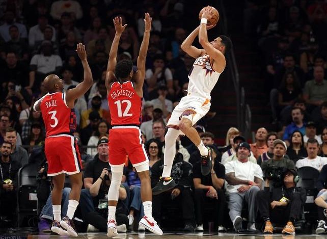 此役,快船派出的阵容则是邓恩、比尔、祖巴茨、琼斯以及巴图姆;太阳派出的首发阵容则是布克、格林、阿伦、奥尼尔以及马克威廉姆斯。首节比赛开打,格林中投不中,马克威廉姆斯补扣得分,随后祖巴茨打进了快船的第一球。太阳这边布克发挥依旧稳定,连续利用高位中投拿分,快船这边祖巴茨罚球,邓恩命中3分,两队打得有来有回。值得一提的是,第一节比尔一持球太阳主场的球迷就嘘声连天,这也导致比尔的手感低迷5投1中,首节只拿2分。而杰伦格林的表现值得肯定,首次出手就是顶着琼斯命中3分,首节拿到8分,加上阿伦也表现不错,反观快船只能依靠祖巴茨在内线取分止血。首节太阳31-27领先快船。