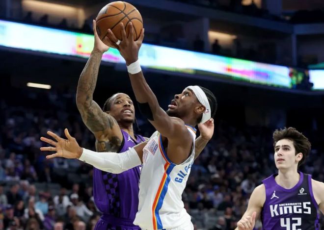 回顾一下比赛,开场华莱士和霍姆格伦连续上分,尤班克斯接连吃饼,亚历山大滑翔暴扣打停国王。暂停回来,威少干拔三分命中,帮国王止住颓势,亚历山大和华莱士内外开花,雷霆将分差拉开到11分时,又是威少三分止血!此后威少长传助攻蒙克轰三分,威少翻身后仰跳投,一路追上比分!节末威少的三分球直接将雷霆打停,国王主场球迷被点燃!节末蒙克联合德罗赞继续下三分雨,帮助国王首节32-30领先雷霆。进入第二节,哈滕连续强攻篮下反超,又是威少跳投止血,此后威少继续助攻德罗赞外线轰炸。