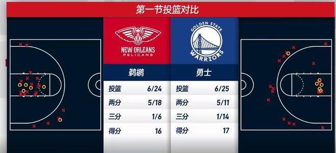 双方开局投篮手感糟糕,两分半钟就波斯特命中一个球。贝篮下得分,巴特勒强攻,奎因中距离,巴特勒补篮,费尔斯上篮,库明加上来就打进,费尔斯反击快攻。巴特勒下去后,勇士的进攻更加滞塞,也就是鹈鹕队太烂了,否则比分早就反超了。