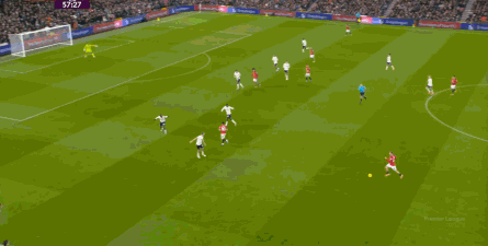 过程中,随着卢克-肖的前插,曼联投入的人手确实增加了,所以在进攻节奏没那么快,效率也没那么高的情况下,从强侧打不进去,但形成了转移,从而在弱侧完成起脚,便在禁区内让达洛特捡了一个漏。