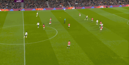 于是从60分钟开始,多尔古,乌加特和芒特相继登场,换下了达洛特、库尼亚和齐尔克泽,曼联的表现并未出现明显的提振,毕竟留在场上的强点姆贝乌莫还在失误: