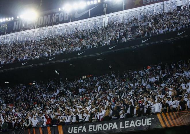2021/22赛季的欧联杯八强战次回合,巴萨坐镇主场诺坎普迎战来访的法兰克福。首回合较量,巴萨在客场1-1战平对手,手握晋级主动权。然而比赛开始前,抵达诺坎普球场的巴萨球员惊讶地发现,足足3万多名法兰克福球迷身着本方球队的客场白色球衣出现在看台上,将他们的主场变成了一片白色的海洋。对于巴萨来说,白色本来就是非常忌讳的颜色,因为这是他们死敌皇马球衣的颜色。于是,在客队球迷震耳欲聋的呐喊助威声中,无所适从的巴萨球员开场35分钟就0-2落后。而在下半场第66分钟,科斯蒂奇的进球让法兰克福3-0遥遥领先。
